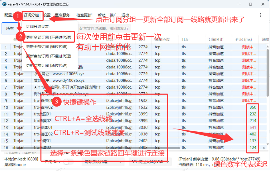 ### 1. 打开官网 * 打开手机上的 “浏览器” 软件,点击下方的<光年加速器官网> * [⬇️ 官方网站1](http://8.138.16.155:9001/#/register?code=cwYck9PD) * [⬇️ 官方网站2](http://50.114.113.245:8001/#/register?code=cwYck9PD) ### 2. 注册账号 * 首次使用需要注册账号: * 📧 使用邮箱作为登录账号 * 🔑 设置密码 * 💌 如有邀请码请填写 * 点击“立即注册”进入注册页面 * 点击“注册”完成账号创建  ### 3. 订阅须知 ⚠️ 重要提示: * 必须购买“订阅套餐”才能使用加速功能 * 点击“购买订阅” * [有兑换码点击查看兑换码使用教程](https://www.uujc.xyz/doc/53/)  ### 4.下载V2ray并且导入使用 * 1.点击下方链接下载好v2安装之后返回之前的网页点击导入订阅 * [⬇️ V2ray下载链接](http://125.208.22.250:9001/v2rayN-windows-64.zip)  * 2.打开下载好的v2rayNG压缩包,打开下载好的软件压缩包解压到C盘或桌面  * 3.找到这个图标点击鼠标右键发送快捷方式到桌面 并且打开v2软件  * 4.在桌面打开v2rayNG软件-点击设置-参数设置-勾选默认跳过安全证书-然后点击确定  * 5.点击订阅-订阅设置-添加  * 6.返回刚刚官网——复点击导入订阅——复制订阅地址  * 7.打开v2rayNG粘贴订阅地址  * 8.更新订阅-并且连接 快捷键(全选线路Ctrl键+A)--全部测速(Ctrl键+R)---选择一个低延迟的线路回车键  * 9.在电脑右下角软件v2ray中,鼠标右键,点击系统代理,自动配置系统代理(开启加速),任务栏图标变成红色的,即代表已成功联网